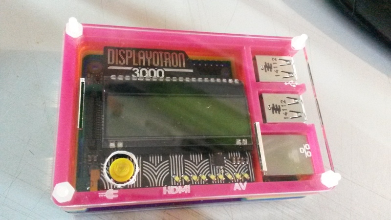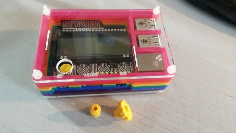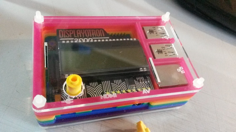 The mod itself is simple; just mount up the Display-o-Tron 3000 inside the Pibow. I used 8 of the supplied 9 layers.