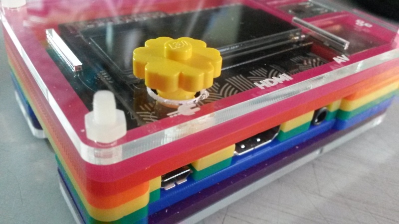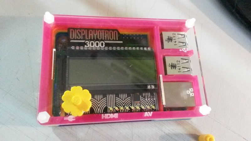 1. This easy Raspberry Pi case mod for the Pibow range of cases from Pimoroni gives access to the joystick button on the Display-o-Tron 3000 using Lego.