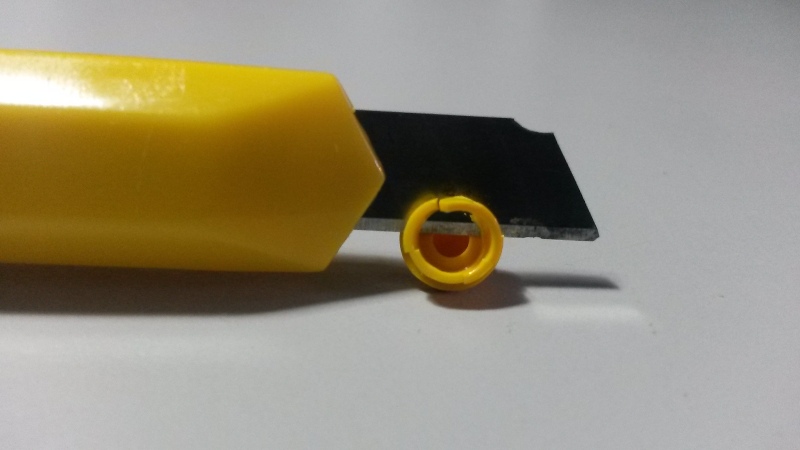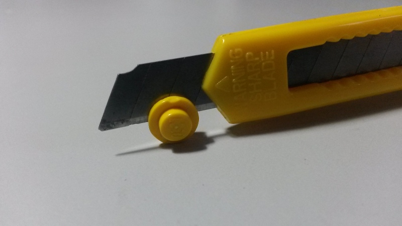 Even though it's only a third-height piece, it is still too tall to operate the DoT3K's tiny joystick. We'll need to trim it down.