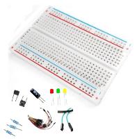 Great idea, and cheap. A breadboard, an assortment of female-to-male jumper cables, some male-to-male jumper cables, some LEDs, some switches and maybe a buzzer.